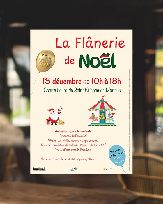 L’Association des Artisans et Commerçants de Saint-Etienne de Montluc m’a demandé de réaliser plusieurs éléments pour un de leur évènement annuel, à savoir leur Flânerie de Noël.