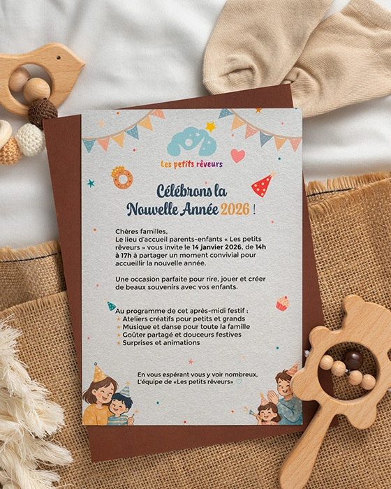 Le lieu d’accueil parents-enfants « Les petits rêveurs » (avec qui j’avais déjà travaillé pour la création de leur logo) m’a contactée afin de leur réaliser une invitation à destination des familles.